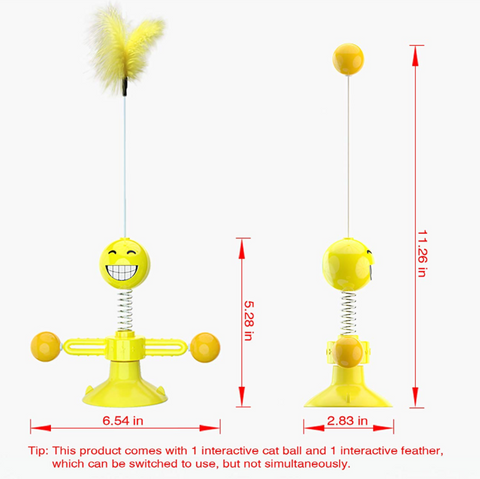 [Attract Cat’s Interest in Many Ways]This is an interactive cat toy for indoor cats,which is designed with cartoon style.The product is a funny cat toy,which can be used as a cat puzzle toy, a cat turntable toy,a windmill toy,a self-playing toy for boredom or a funny teasing stick that can be shaken back and force.